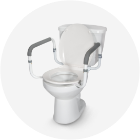 Looking for toilet safety solutions? A raised toilet seat offers extra security as it locks the seat into place for stability. Elevated toilet seats also add an additional few inches to the height of a toilet, making it easier to get on and off the seat. Handles for toilets are another popular safety feature. Our toilet safety rails and frames are easy to attach and add extra support and comfort for getting up and down.