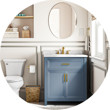 If you’d rather purchase a complete bathroom set, we offer thoughtfully designed collections by Allen + Roth®, KOHLER, Moen and other brands. Collections typically include the major bathroom pieces, such as toilets, lighting and vanities. You may find decorative accents, like mirrors and hardware, included in some sets, as well.