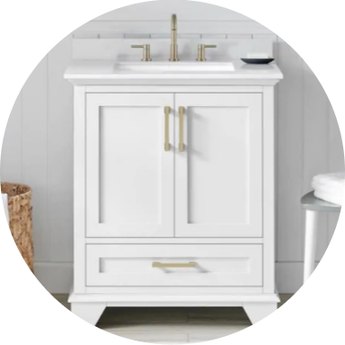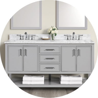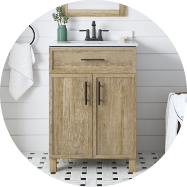 Designing your bathroom can be a fun experience and a chance to explore the wide selection of bathroom vanities we offer at Lowe’s. Whether you’re considering bathroom cabinets for storage, bathroom vanities with tops or stand-alone bathroom vanities, we’ve got the right option for your space. You can shop for a specific color, such as a white vanity, to find a vanity that matches your existing bathroom backsplash — or we can help you redecorate from floor to ceiling.