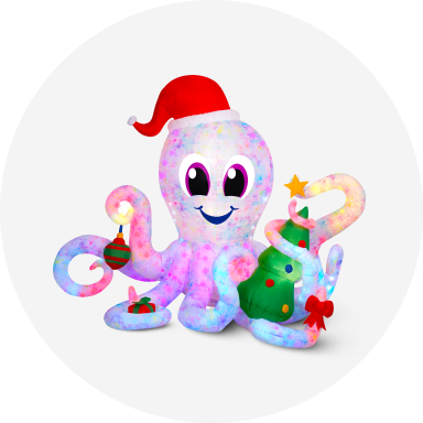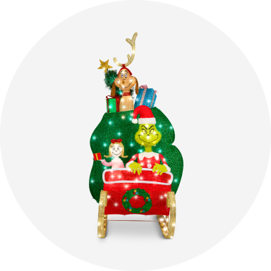 With a laser light projector, lights and wreaths, you can make your home feel like a winter wonderland before even stepping through the front door. Stock up on string lights to bring a warm glow to your home’s exterior trim, patio, staircases and other outdoor areas. Our string lights come in a variety of styles, including multicolor lights, classic white lights, incandescent lights and festive icicle-shaped lights. Once lighting is covered, check out our outdoor lighted Christmas decorations and inflatable Christmas decorations. You’ll also find Christmas door decorations and Christmas window decorations to dress up your porch and home. Shop by theme to make it easy to find what you’re looking for, whether that’s Disney character inflatables, Nativity scenes or reindeer.