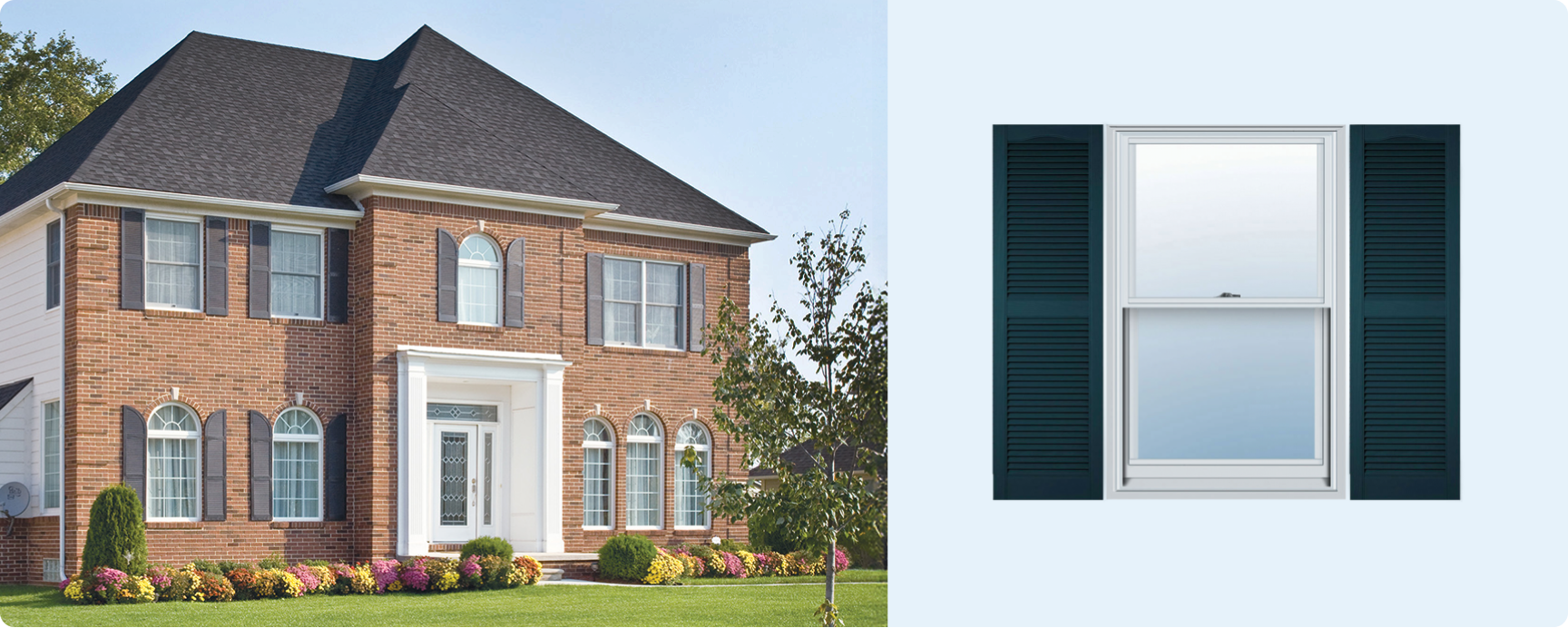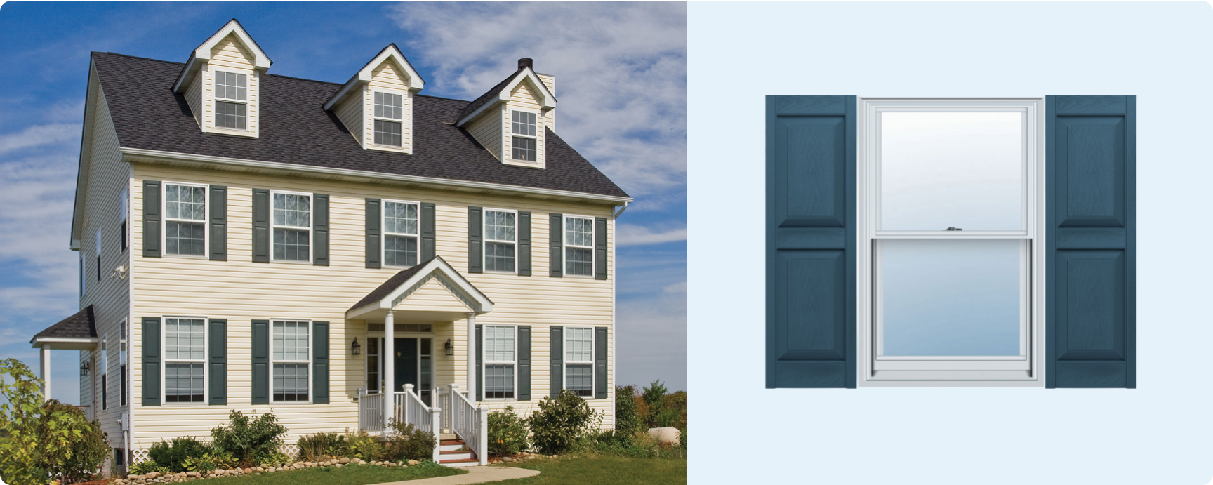 Material matters, too. There are outdoor wooden shutter materials, like cedar, that resist damage from insects and weather. Vinyl exterior house shutters resist fading, rot, cracking and peeling — and offer the look of real wood, giving you the best of both worlds in durability and appearance.