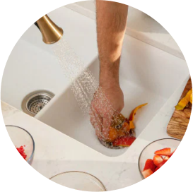Raised into place from underneath, undermount sinks don’t have a lip on the countertop, making cleanup easier.