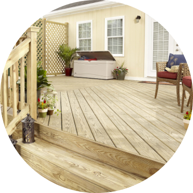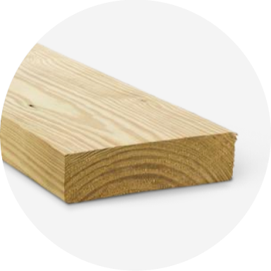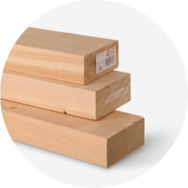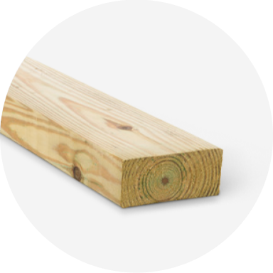Treated lumber is suitable for exterior purposes and is treated for ground or above-ground contact. It’s resistant to rot, insect damage and more. Once it's fully dried, treated lumber can be stained or painted. Use it in applications such as decking, fence pickets, framing, support posts and more. Cedar wood is another option for outdoor projects since it naturally resists decay and insects. It’s natural beauty also makes it a favorite for woodworking projects.
