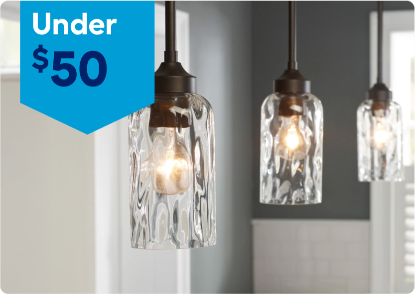 a fortune by swapping in modern pendant lighting over the bathroom vanity.