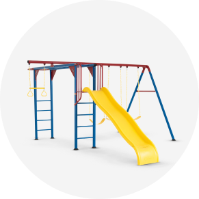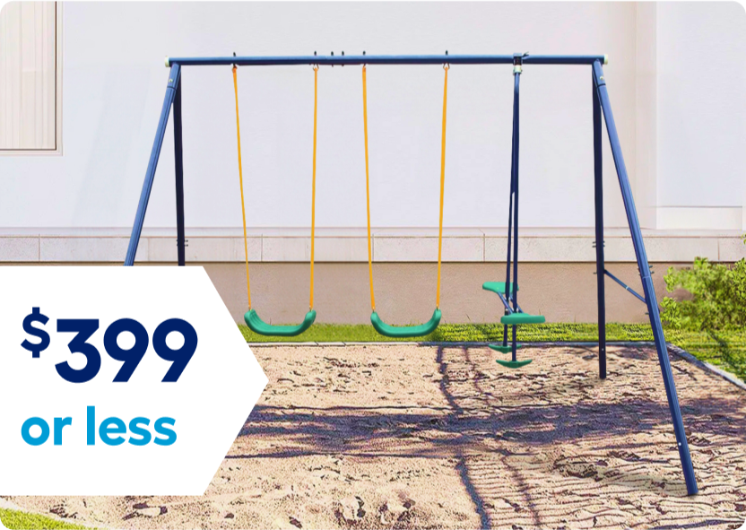 When it comes to outdoor playsets, there are many play structure options available. Choose from metal swing sets or wooden swing sets, both of which are durable and customizable. Put together a swing set kit. Or mix and match to create double playground slides or add swing set accessories, like monkey bars or an outdoor baby swing, to make an epic play area that all the neighborhood kids will love.