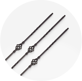 Balusters are upright support beams. In addition to providing support for stair railings, they prevent people, pets and objects from falling through the space that between the treads and handrail.