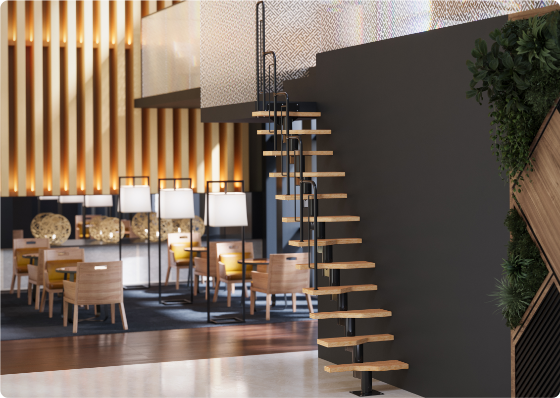 For some builders and do-it-yourselfers, choosing every stair component, piece by piece, might take too much time. That’s why they might prefer staircase kits, which come with building materials that are manufactured to fit perfectly with each other. If you like the look of a modern staircase, black spiral staircase kits are a great option. They’re also space efficient and don’t need side support. Gray modular staircase kits are also fantastic options, as they generally can support more foot traffic and look less busy.
