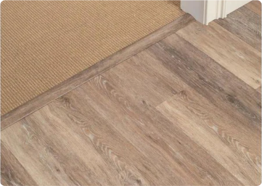 Once your vinyl plank flooring is installed, make sure you add matching vinyl moulding and trim to give your floors a clean and polished look. Moulding — like quarter round or shoe moulding — can help to conceal gaps between your floorboards and walls, as well as to protect your walls from being bumped and marked by shoes or furniture. T-moulding, or floor-transition moulding, bridges and conceals expansion gaps between flooring types of the same thickness.