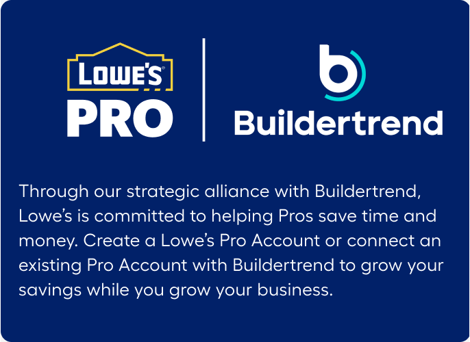 In addition to your exclusive Buildertrend benefits, all Lowe’s Pros in the MyLowe’s Pro Rewards Program receive Pro benefits every day and additional business tools.