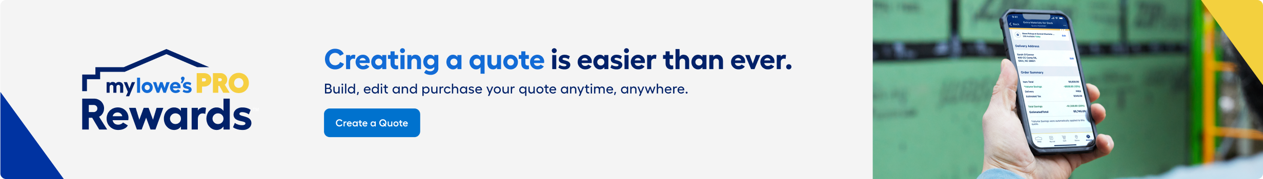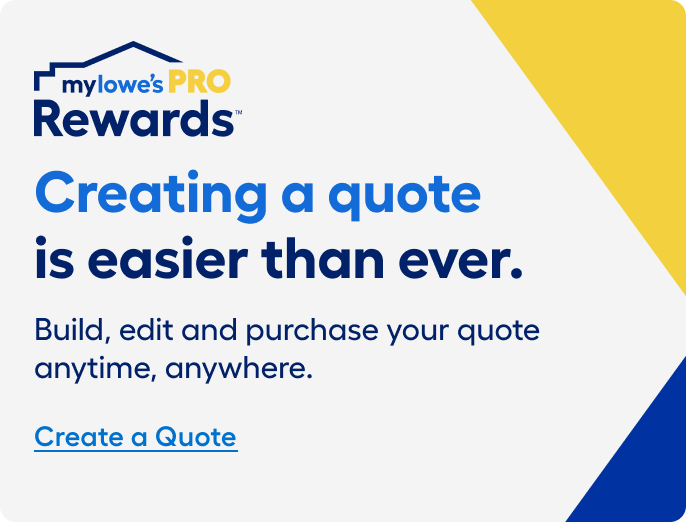*MyLowe’s Pro Rewards subject to program terms and conditions. Subject to change. Savings on eligible orders through a quote of $2,000 or more: Exclusions apply. More terms and restrictions apply. See Lowes.com/Terms for details.