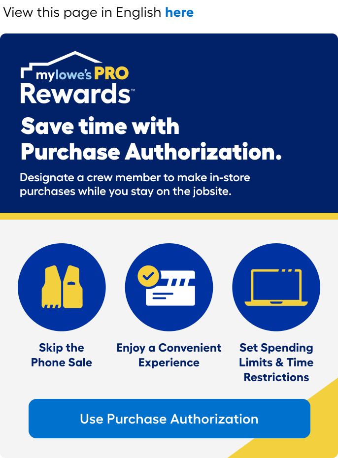 MyLowe’s Pro Rewards Program subject to terms & conditions. Visit Lowes.com/Terms for details. Subject to change.