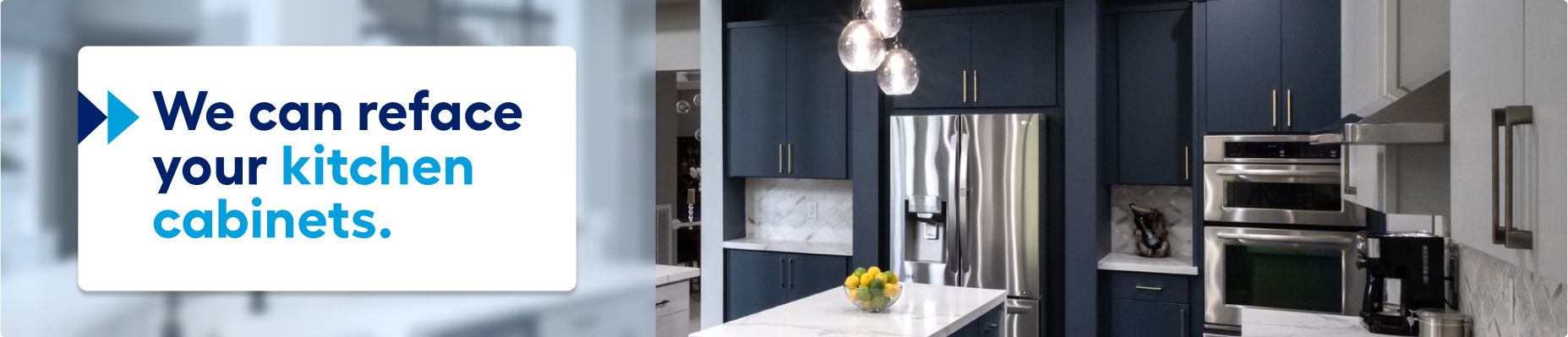 Cabinet refacing is a quick and simple way to make a dramatic improvement to the look of your kitchen or bathroom cabinets. Cabinet refacing involves using your existing cabinet boxes, but updating the cabinets in a fraction of the time of a full cabinet replacement and installation.