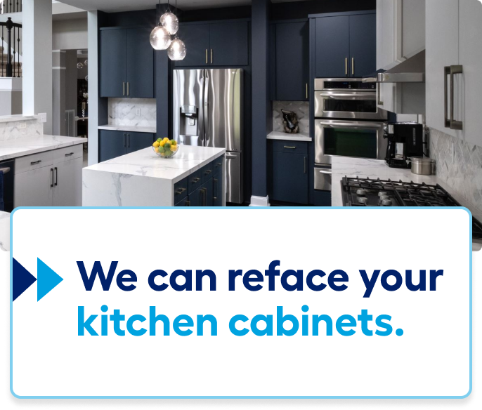 We can help with your cabinet renewal project. We’ll set up a professional in-home design consultation to help you select the right look and products for your space. Then, an independent professional installation team will prepare your cabinets, resurface them with new doors and drawer fronts, and install new drawer slides, hinges and hardware.