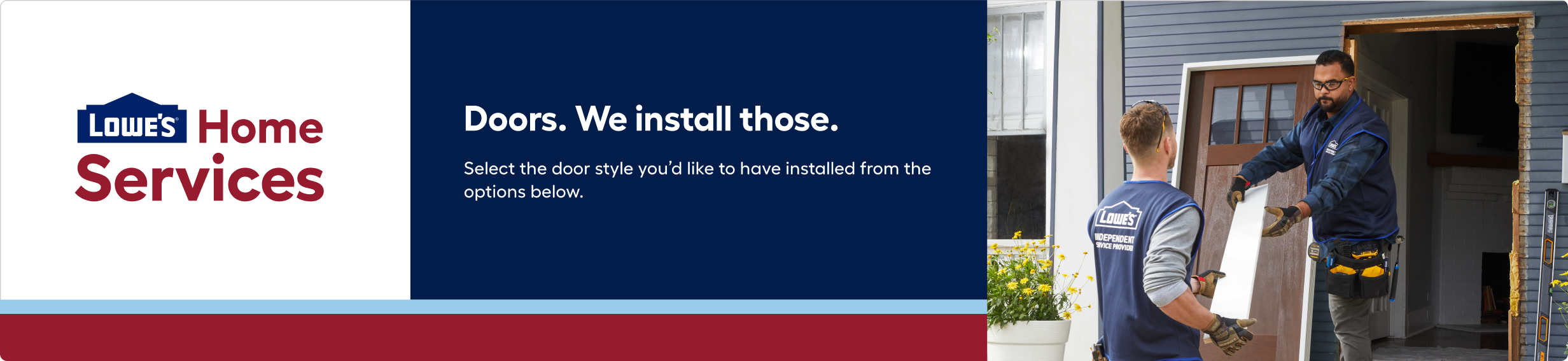 A new door is a simple way to update your home, and we’ll help you find one that perfectly matches your needs. You can even buy a door online and pick it up at your local Lowe’s at your convenience. Contact us today to get your door installation project started.