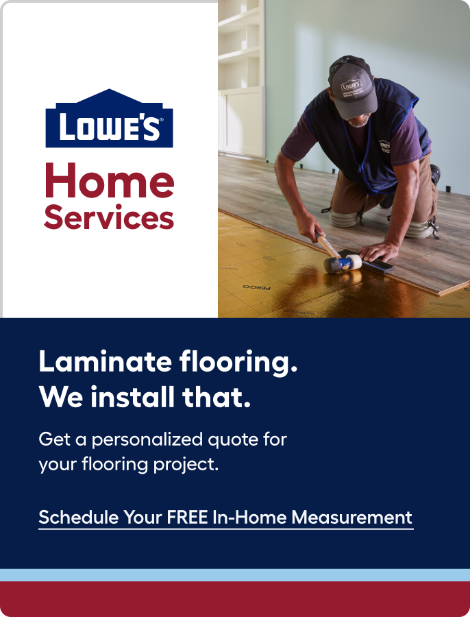 Wondering how to install laminate flooring? Jobs like installing laminate flooring can be demanding, but with help from trusted professional independent installers in your area, you can ease some of the pressure. Lowe’s coordinates with the professional independent installers so you can get help with everything from measuring and estimating the project’s cost to delivery and installation. Whether you opt for laminate wood flooring or a different look, you can find the best laminate flooring for your home’s needs and style at Lowe’s. Browse through various laminate flooring samples on Lowes.com or at your local Lowe’s to make your flooring decision easier — and then leave the rest to the professional independent installers. Let Lowe’s help install your new laminate flooring today.