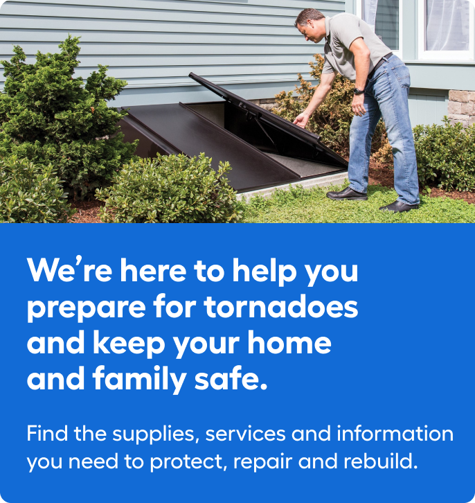To prepare for high water or potential flooding, you should get sand for sand bags and sump pumps to remove water. Because it’s likely that power will be affected, it’s important to stock up on essential tornado items, such as generators, propane tanks, batteries and flashlights. First aid kits can also come in handy for minor injuries. If you have to fix structural damage, Lowe’s is your go-to for tools and materials, including power equipment, plywood and lumber. You can also get cleaning supplies, like shop vacuums, mops, trash cans, mold removers and tarps.