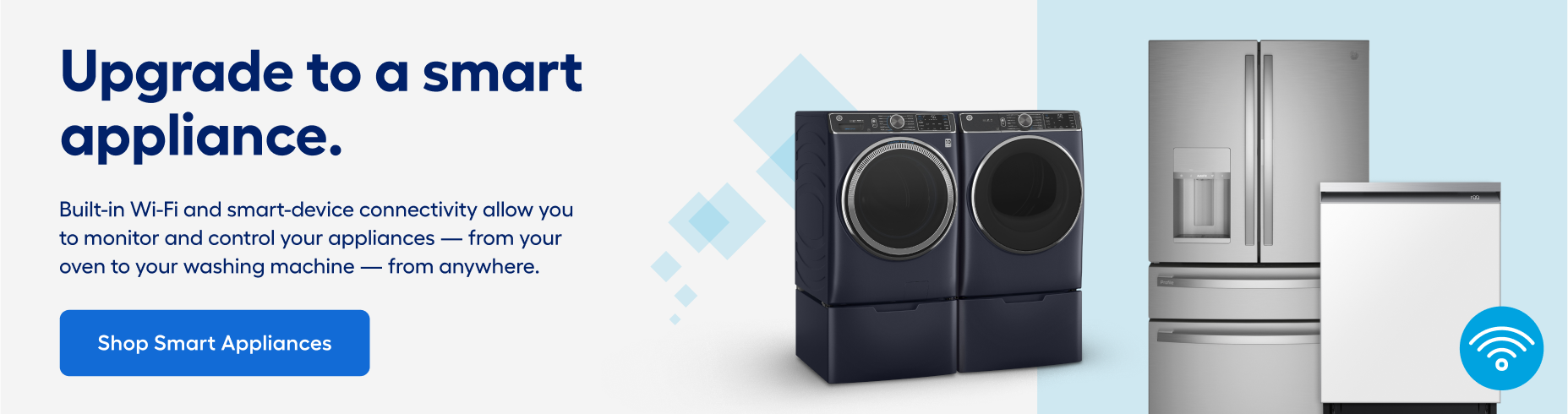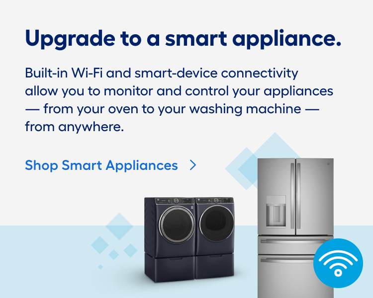 Looking for a way to make washing and drying clothes more manageable? Upgrade your laundry room with smart washers and dryers. Shop well-known brands, such as GE smart washers, that have built-in Wi-Fi, allowing you to monitor and control your loads from your smartphone, even if you’re not at home.